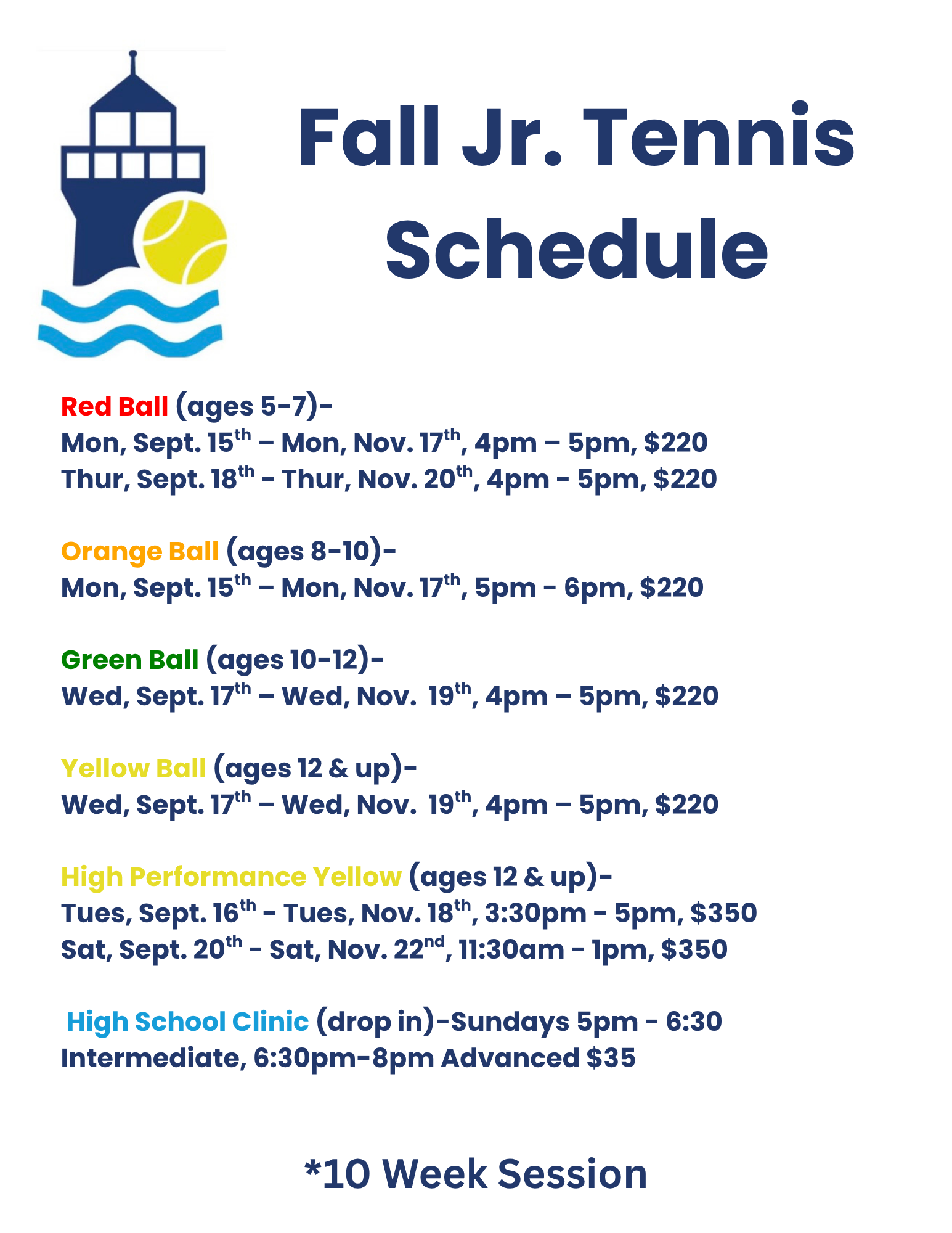 We also offer weekly clinics and high school drop-in classes for kids of all ages: