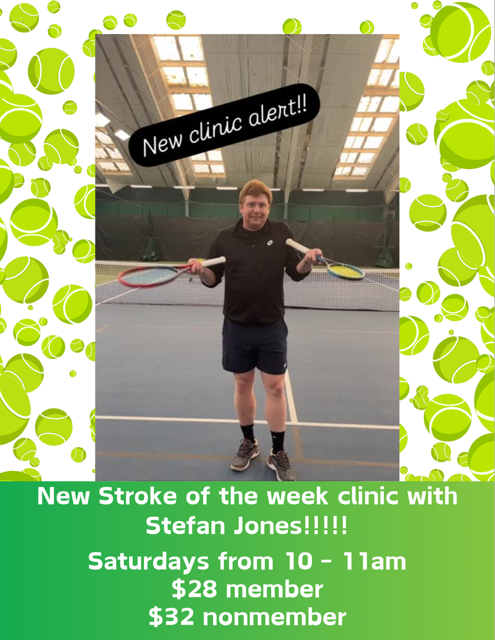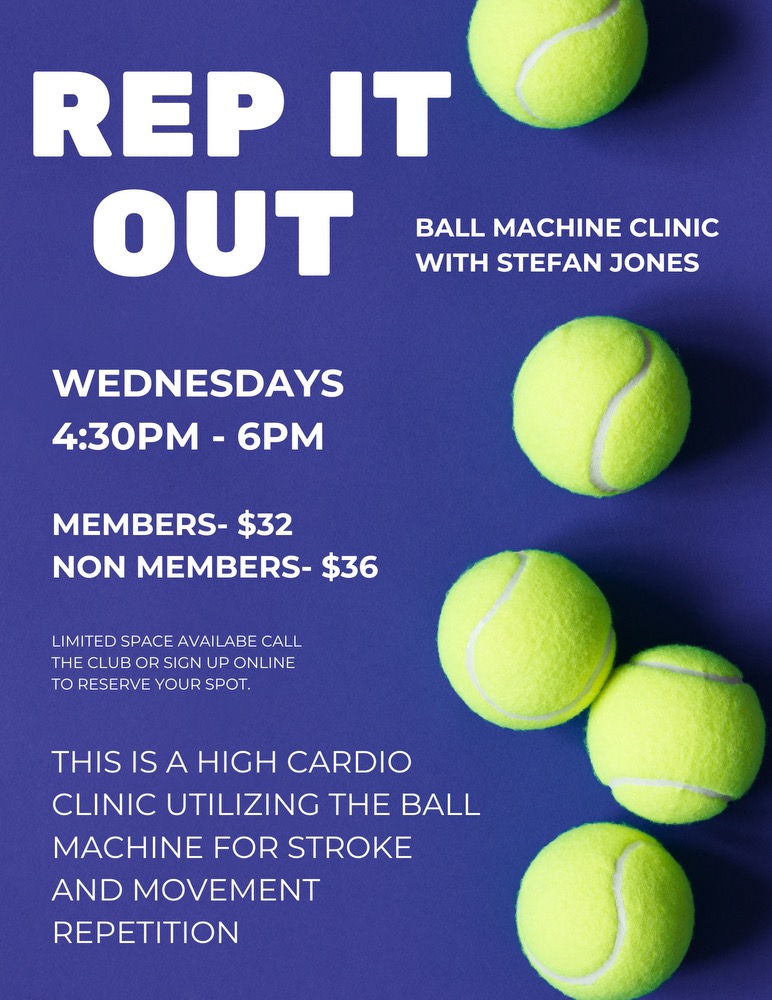 Wednesday at 4:30 is Rep it out with Stefan (great workout and clinic using the ball machine)